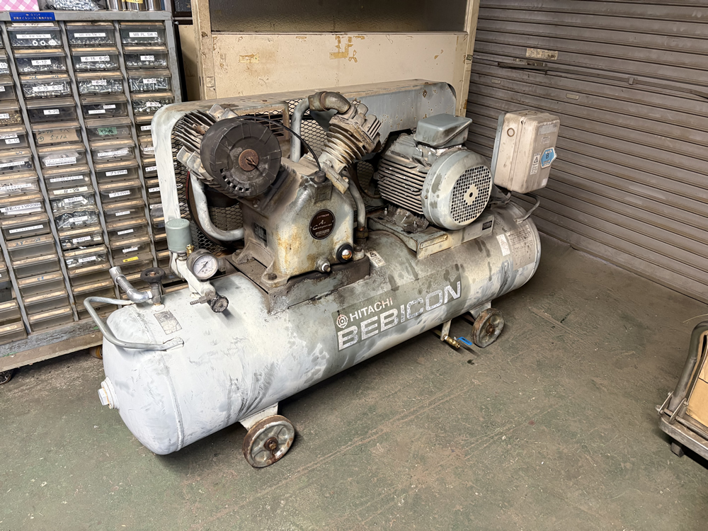 そこでヤマヤE&Sでは、コンプレッサーをご注文頂いたお客様に限り納品までの間、代替機として「日立べビコン、「日立べビコン(5.5P-9.5V 5 50Hz 3相200V)」」コンプレッサーをお貸しいたします。